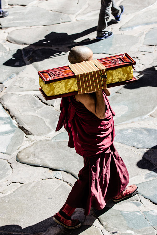 A lama holds Buddhist Scriptures in the Tashilhunpo Monastery. The Tashilhunpo Monastery, located in Shigatse City in the Tibet Autonomous Region and built in 1447(Ming Dynasty), is one of the six biggest monasteries of the Gelug Sect of Chinese Tibetan Buddhism. Nearly a thousand of lamas practice Buddhism in the Tashilhunpo Monastery. [Photo: CRIENGLISH.com]