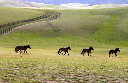 Photo shows the picturesque scenery of Barkol grassland in Xinjiang Uygur Autonomous Region.Barkol grassland lies on the north side of Tianshan Mountain, northwest China’s Xinjiang Uygur Autonomous Region. Covering an area of 19,107 square kilometers, the grassland is now in its late summer beauty. [China.org.cn/Photo by Sun Jihu]