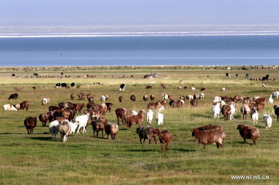Animals search for food on a grassland in Kazak Autonomous County of Barkol in Hami, northwest China's Xinjiang Uygur Autonomous Region, Aug. 24, 2015. (Xinhua/Zhou Haijun)