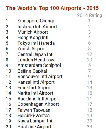 The Skytrax annual rankings have published its latest annual World Airport Awards. Singapore's Changi International Airport took the crown as the world's best airport, and Beijing stood 10th overall.