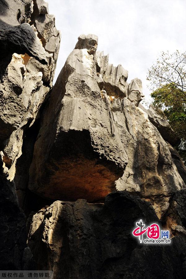 The Stone Forest is known as "One of the Earth's Natural Wonders." All visitors to Kunming whether from China or abroad come here to admire the unique scenes formed by the stones. The Stone Forest is located in Shilin county, 85 kilometers southeast of Kunming. Covering a few hundred square kilometers, stone peaks rise abruptly from the ground in numerous layers like bamboo shoots, forests and pagodas. If you climb to the top of one of the peaks, you can see thousands of peaks and valleys just like a marvelous vast black forest. The roads wind around between the peaks, taking visitors to ever more unexpected and beautiful landscapes. [China.org.cn/Photo by Jia Yunlong]