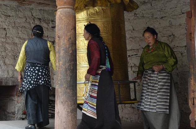 Tourists visit Galden Jampaling Monastery in Qamdo, southwest China's Tibet Autonomous Region, Sept. 21, 2015. Galden Jampaling Monastery was founded by Jansem Sherab Zangpo, one of disciples of Tsongkapa, the founder of Gelug Sect, in 1437. The monastery was listed as national key cultural relics protection site in 2013. (Xinhua/Liu Dongjun)