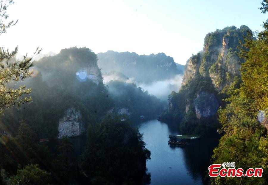Photo taken on Oct. 8 shows the magnificent landscape of Wulingyuan Scenic Area in Zhangjiajie, Hunan province, with the mist lingering around. (Photo: China News Service/Wu Yongbing)
