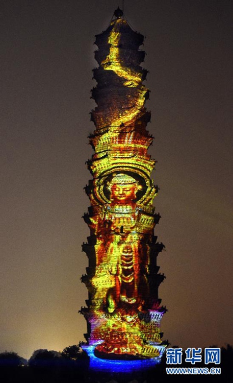 Photo taken on Oct. 16, 2015 shows light show in Kaifeng of Central China's Henan Province. (Xinhua)