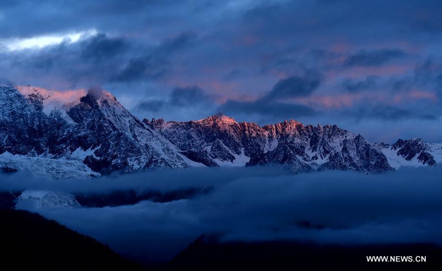 Sunshine lightens the Meili Snow Mountain in Deqin County of Deqen Tibetan Autonomous Prefecture, southwest China's Yunnan Province, Oct. 15, 2015. The Meili Snow Mountain, with the highest peak Kawagebo at an altitude of 6,740 meters, is covered with glaciers formed thousands of years ago. (Photo: Xinhua/Lin Yiguang)