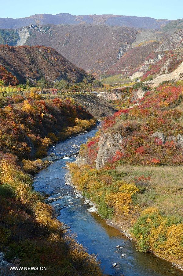 Photo taken on Oct. 17, 2015 shows the scenery of the national forest park at Liupanshan Mountain in Jingyuan County, northwest China's Ningxia Hui Autonomous Region. As autumn falls, leaves of trees in the national forest park of Liupanshan Mountain turned yellow and crimson. (Xinhua/Peng Zhaozhi)