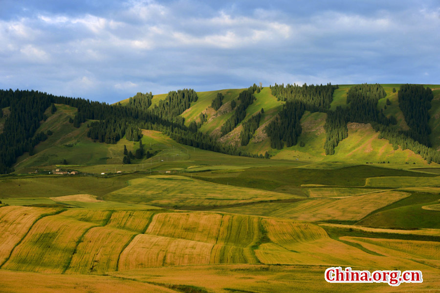 Jiangbulak means the "source of holy water" in the Kazakh language. The spot boasts amazing natural scenes. The best season to visit Jiangbulak is June or July. Various flowers in different colors, massive barley fields, crystal lakes, and multi-peaked mountains abound.[China.org.cn/Photo by Ma Xinmin]