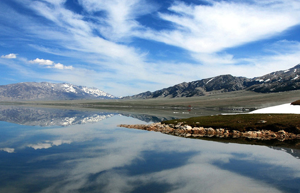 In legend, the lake is composed of the tears of a couple of Kazak young lovers.