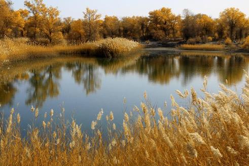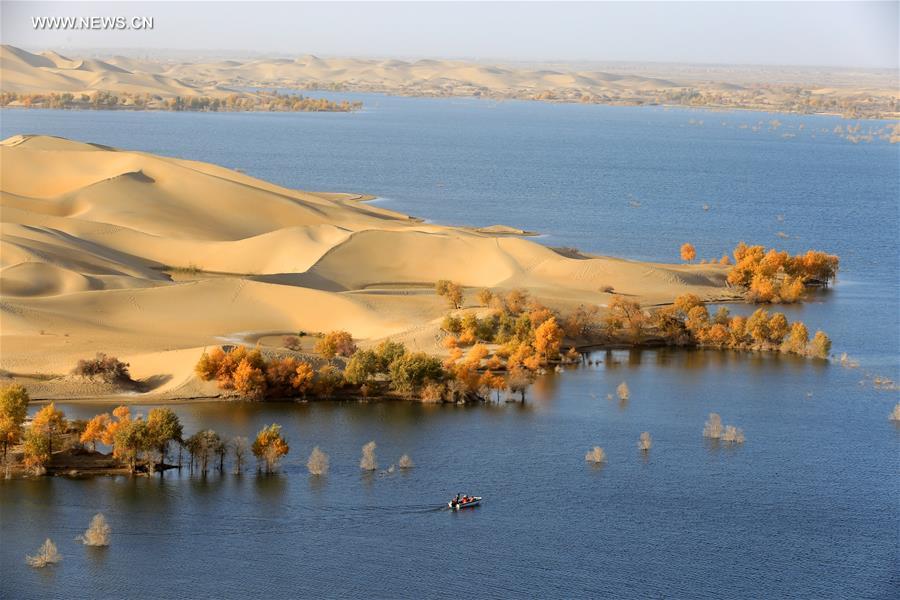 Photo taken on Oct. 27, 2015 shows the forest of populus euphratica, commonly known as desert poplar, in Weili County, Mongolian Autonomous Prefecture of Bayingolin, northwest China's Xinjiang Uygur Autonomous Region. (Xinhua/Wang Hanbing)