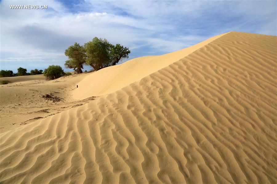 Photo taken on Oct. 25, 2014 shows the forest of populus euphratica, commonly known as desert poplar, in Luntai County, Mongolian Autonomous Prefecture of Bayingolin, northwest China's Xinjiang Uygur Autonomous Region. (Xinhua/Wang Hanbing)