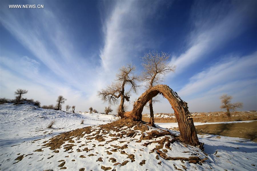 Photo taken on Dec. 22, 2014 shows the populus euphratica, commonly known as desert poplar, in Luntai County, Mongolian Autonomous Prefecture of Bayingolin, northwest China's Xinjiang Uygur Autonomous Region. (Xinhua/Wang Hanbing)