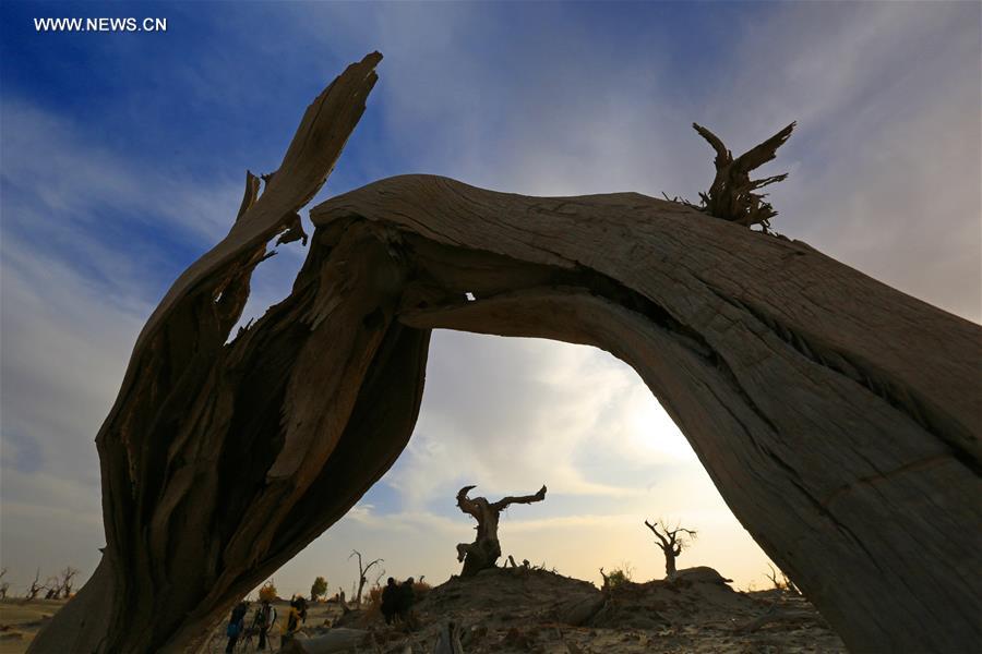 Photo taken on Oct. 25, 2014 shows the forest of populus euphratica, commonly known as desert poplar, in Luntai County, Mongolian Autonomous Prefecture of Bayingolin, northwest China's Xinjiang Uygur Autonomous Region. (Xinhua/Wang Hanbing)
