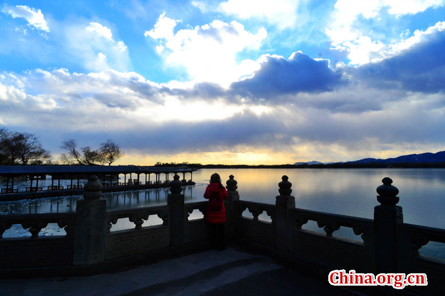 The Summer Palace, one of the finest examples Garden Architecture in China, is located in the northwest suburbs of Beijing. More than 100 examples of traditional architecture are to be found in the park, including pavilions, terraces, temples, pagodas, waterside gazebos, covered corridors, stone bridges and the famous marble boat. [China.org.cn/Photo by Fan Jiashan]