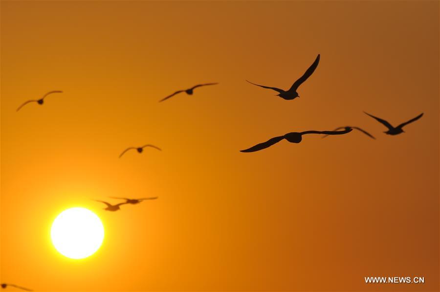 Gulls are seen on the seashore in Rizhao City, east China's Shandong Province, Dec. 4, 2015. (Xinhua/Liu Mingzhao)
