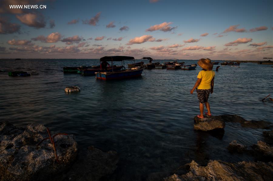 A fisherwoman waits for her husband on the coast on the Zhaoshu Island in Sansha City, south China's Hainan Province, Dec. 11, 2015. (Xinhua/Zhao Yingquan)