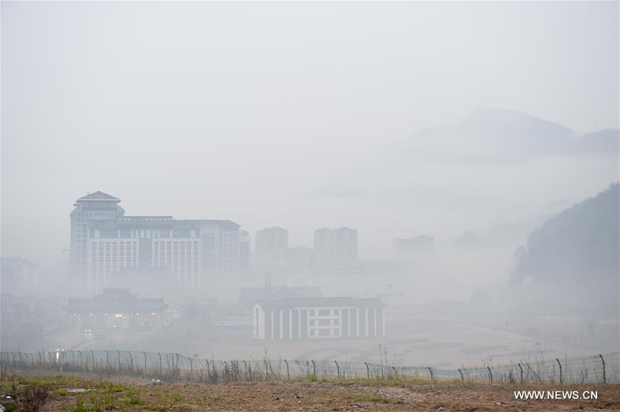 Photo taken on Jan. 28, 2016 shows buildings enshrouded in misty rain at Chengguan township of Lishui City, east China's Zhejiang Province. (Xinhua/Li Suren)