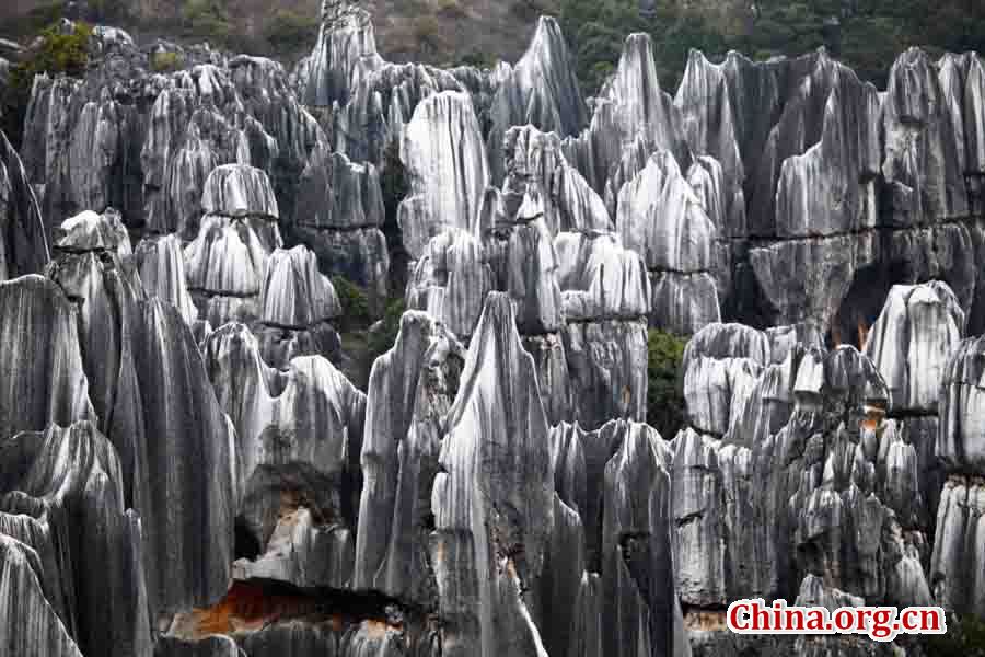 Kunming, the capital of stunning Yunnan Province, is famous for its excellent scenery. Shilin, or literally "Stone Forest", is the most famous. As 'One of the World's Natural Wonders', Stone Forest features natural karst stone formations that resemble a forest; some are elegant, some are rugged and each has distinguishing characteristics that make each seem lifelike. The tall rocks jut from the ground much like stalagmites or even like trees of stone, creating the illusion of a forest made of stone. [China.org.cn/Photo by Sun Jihu]