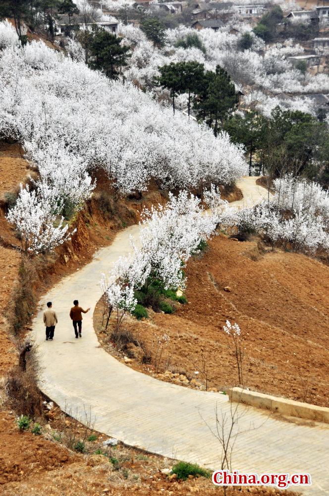 Photo taken on March 9, 2016 shows the cherry blossoms in Longjie Township of Weining County, southwest China's Guizhou Province.[China.org.cn/Photo by Yang Wenbin]