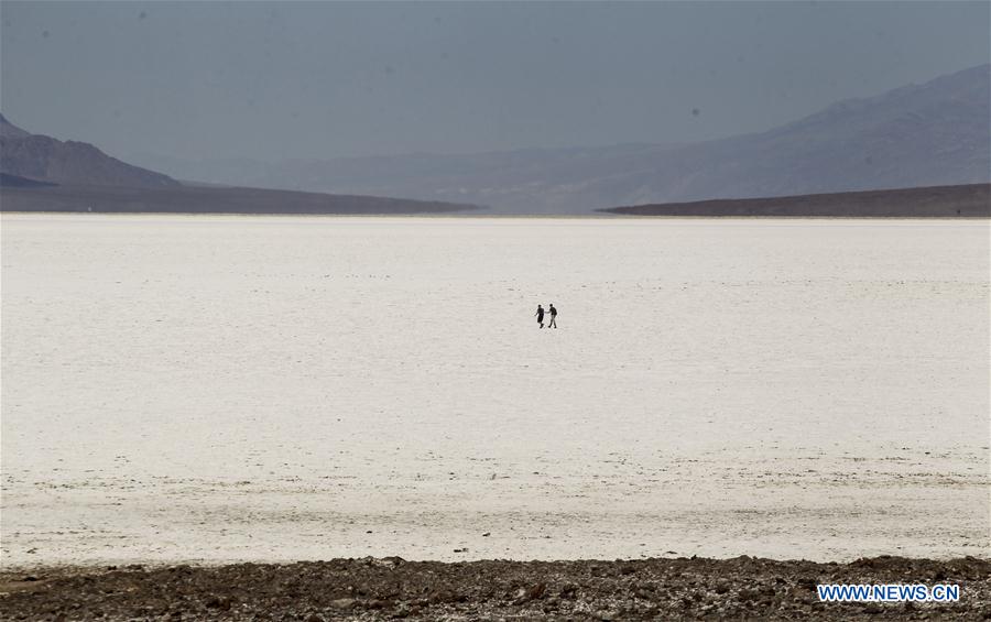 Tourists walk on the salt pan at Badwater Basin in Death Valley National Park, California, the United States, March 26, 2016. (Xinhua/Zhao Hanrong)