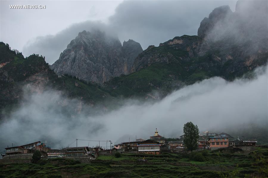 Photo taken on June 23, 2016 shows the fog scenery after a rainfall at Zhagana, a place with an average altitude of 3,000 meters in northwest China's Gansu Province. (Xinhua/Xin Yuewei)
