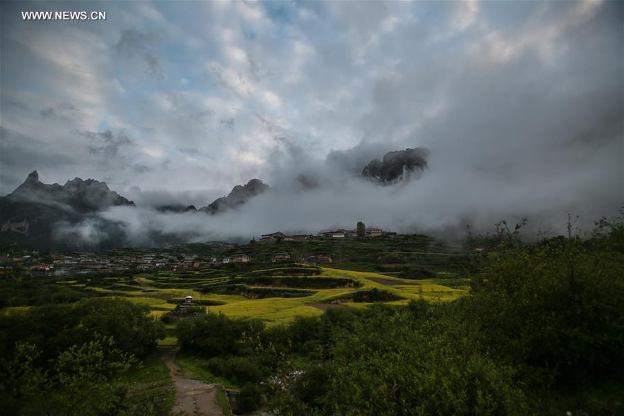Photo taken on June 23, 2016 shows the fog scenery after a rainfall at Zhagana, a place with an average altitude of 3,000 meters in northwest China's Gansu Province. (Xinhua/Xin Yuewei)