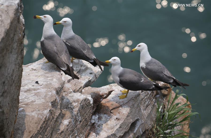 Yellow-billed gulls rest on the Cheniushan Island in Lianyungang City, east China's Jiangsu Province, June 26, 2016. (Xinhua/Wang Jianmin)