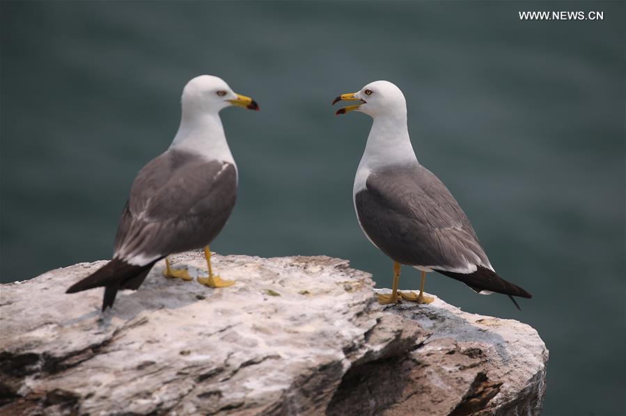 Yellow-billed gulls rest on the Cheniushan Island in Lianyungang City, east China's Jiangsu Province, June 26, 2016. (Xinhua/Wang Jianmin)
