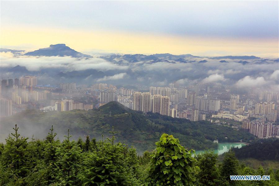 Photo taken on Sept. 2, 2016 shows the urban area surrounded by green plants in Kaili City, southwest China's Guizhou Province. More green land could be seen in recent years in the city. (Xinhua/Wu Jibin)