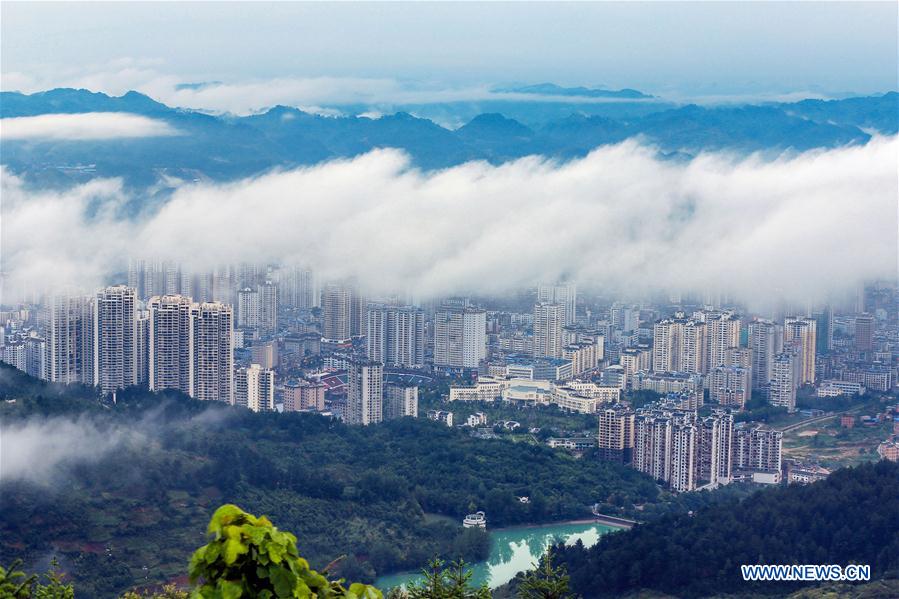 Photo taken on Sept. 2, 2016 shows the urban area surrounded by green plants in Kaili City, southwest China's Guizhou Province. More green land could be seen in recent years in the city. (Xinhua/Wu Jibin)