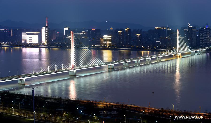 Photo taken on Sept. 2, 2016 shows a bridge on the Qiantang River in Hangzhou, capital city of east China's Zhejiang Province. The G20 Summit will be held in Hangzhou from Sept. 4 to 5. (Xinhua/Wang Dingchang)