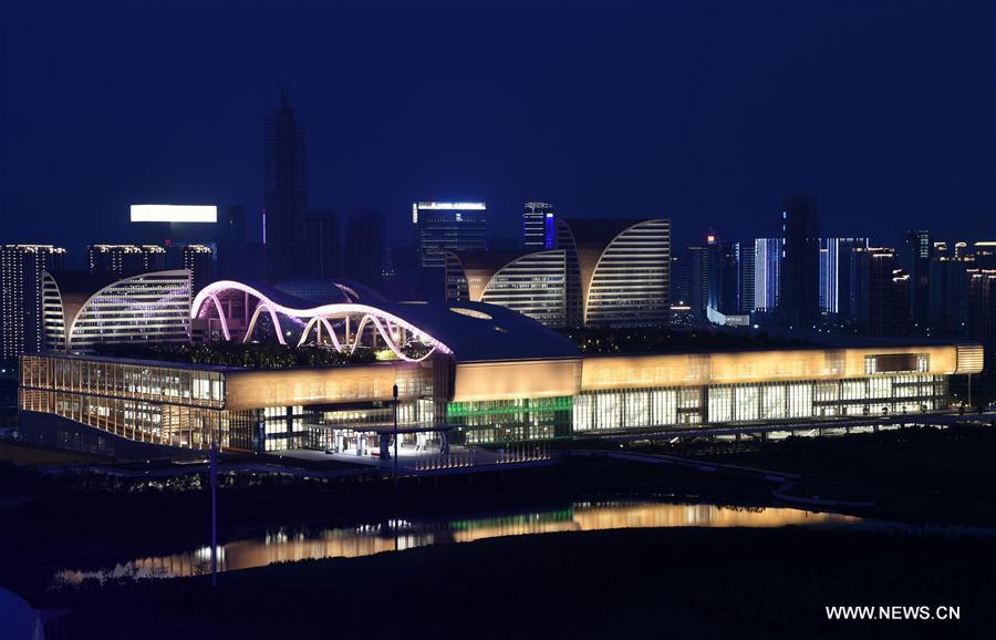 Photo taken on Sept. 2, 2016 shows the Hangzhou International Expo Center in Hangzhou, capital city of east China's Zhejiang Province. The G20 Summit will be held in Hangzhou from Sept. 4 to 5. (Xinhua/Ju Huanzong)