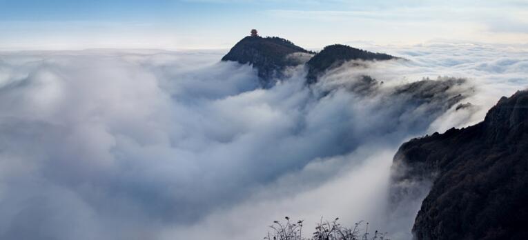 The spectacular Sea of Clouds, as seen from the Golden Summit Temple of Mount Emei. There are four natural miracles on the mountain: the sunrise, the Sea of Clouds, Buddha's Halo and the Holy Lamps. [Photo provided to People.cn]
