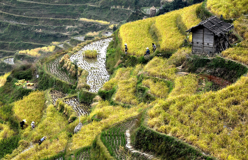 Photo taken on October 10, 2016 shows Marvelous scenery of terrace fields in Jiache Village of Congjiang County, southwest China's Guizhou Province.[China.org.cn]