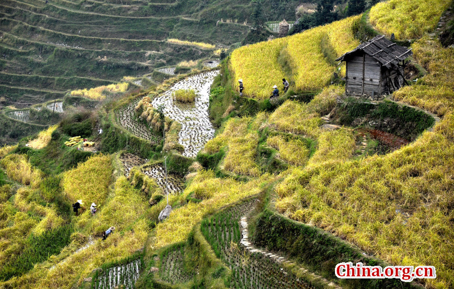 Photo taken on October 10, 2016 shows Marvelous scenery of terrace fields in Jiache Village of Congjiang County, southwest China's Guizhou Province.[China.org.cn]