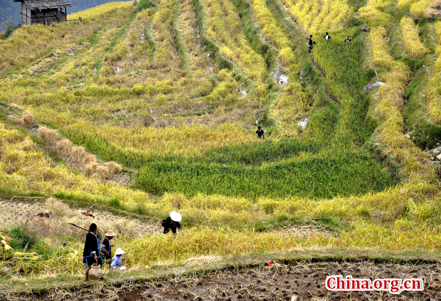 Photo taken on October 10, 2016 shows Marvelous scenery of terrace fields in Jiache Village of Congjiang County, southwest China's Guizhou Province.[China.org.cn]
