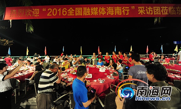 由南海网主办的“全域旅游海南范例——2016全国融媒体海南行”大型采访活动10月21日结束了所有行程。21日晚,东海龙宫美食城精心准备了海鲜大餐,犒劳52位全国知名媒体、自媒体、微博达人。