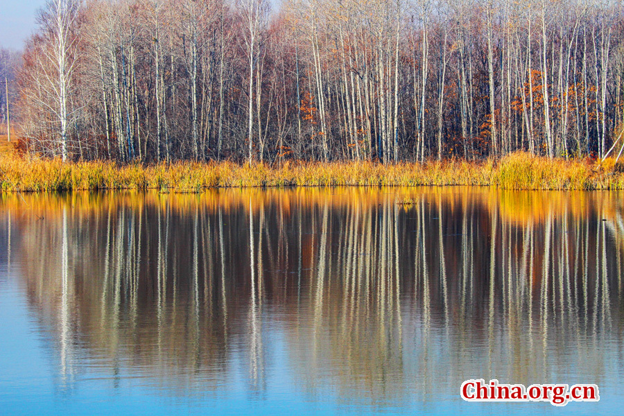 Photo shows the autumn scenery of the Wusuli river along the China-Russia border in Northeast China's Heilongjiang province.The Wusuli River is 905 kilometers long with basin area of 187,000 square kilometers.[China.org.cn/Photo by Han Jiaju]