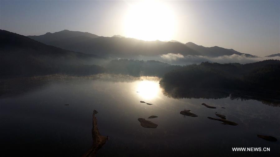 Photo taken on Nov. 28, 2016 shows fog-enveloped Qishu Lake in Yixian County of Huangshan City, east China's Anhui Province. (Xinhua/Chen Yehua)