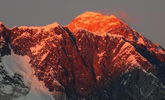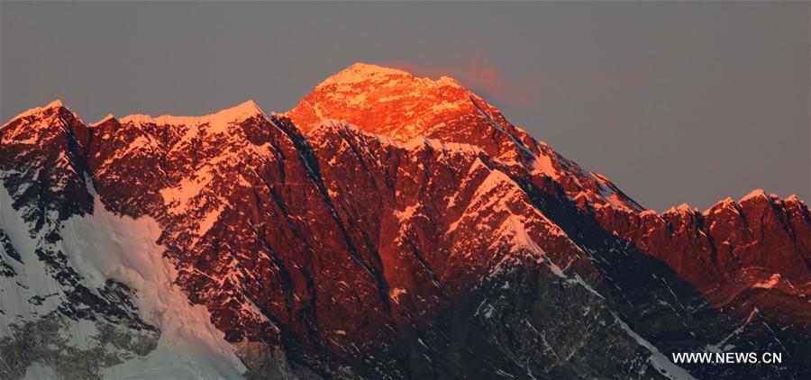 Photo taken on Nov. 20, 2016 shows Mount Qomolangma at sunset in Debuche of Khumbu region in Solukhumbu, Nepal. (Xinhua/Sunil Sharma)