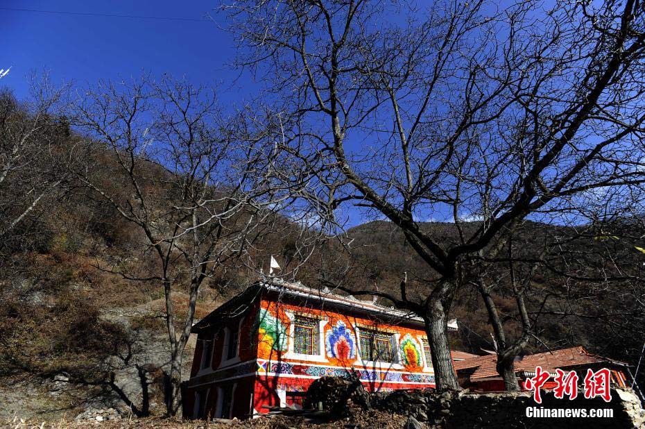 Photo shows colorful Tibetan-style residences in Heishui County, Aba Tibetan and Qiang Autonomous Prefecture, Sichuan province, Nov. 28, 2016. (Chinanews.com/An Yuan)