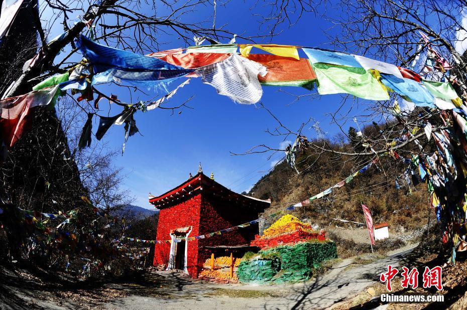 Photo shows colorful Tibetan-style residences in Heishui County, Aba Tibetan and Qiang Autonomous Prefecture, Sichuan province, Nov. 28, 2016. (Chinanews.com/An Yuan)