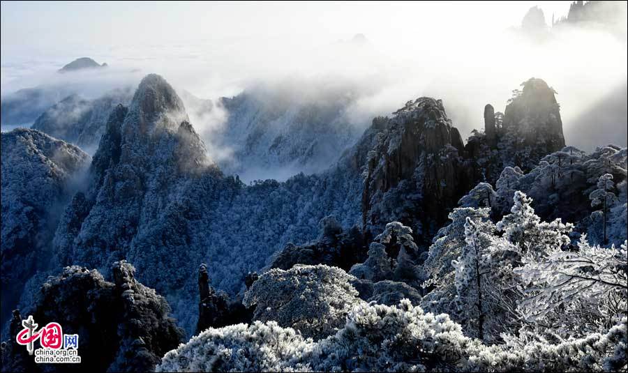 Mount Huangshan greets its first snowfall of the season on Nov. 22, 2016. The nationally-renowned scenic spot in Anhui Province is blanketed in layers of silver-white, with crystal-clear icicles that hang on tree branches. Here nature creates scenes of frozen beauty that emerge to attract tourists and photographers.[China.org.cn/Photo by Wang Hui]
