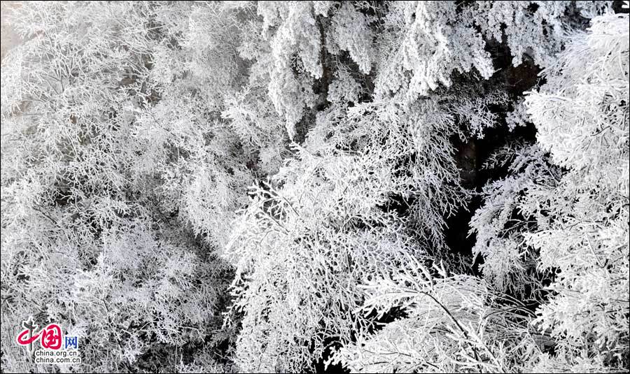 Mount Huangshan greets its first snowfall of the season on Nov. 22, 2016. The nationally-renowned scenic spot in Anhui Province is blanketed in layers of silver-white, with crystal-clear icicles that hang on tree branches. Here nature creates scenes of frozen beauty that emerge to attract tourists and photographers.[China.org.cn/Photo by Wang Hui]