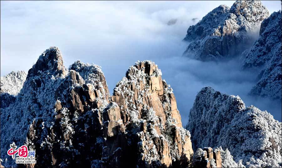 Mount Huangshan greets its first snowfall of the season on Nov. 22, 2016. The nationally-renowned scenic spot in Anhui Province is blanketed in layers of silver-white, with crystal-clear icicles that hang on tree branches. Here nature creates scenes of frozen beauty that emerge to attract tourists and photographers.[China.org.cn/Photo by Wang Hui]