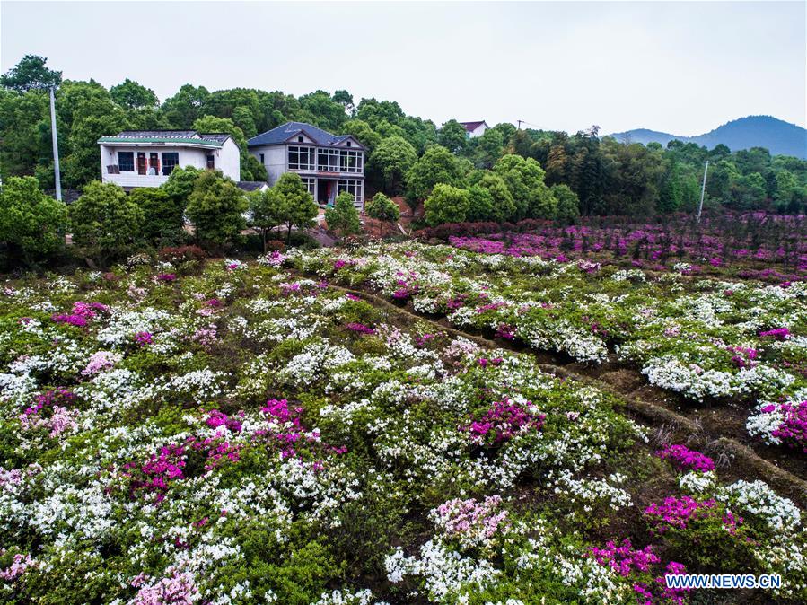 Photo taken on April 26, 2017 shows azalea blossoms in Si'an Township of Changxing County, east China's Zhejiang Province. More than 100 kinds of azalea flowers were planted here and attracted thousands of visitors. (Xinhua/Xu Yu)