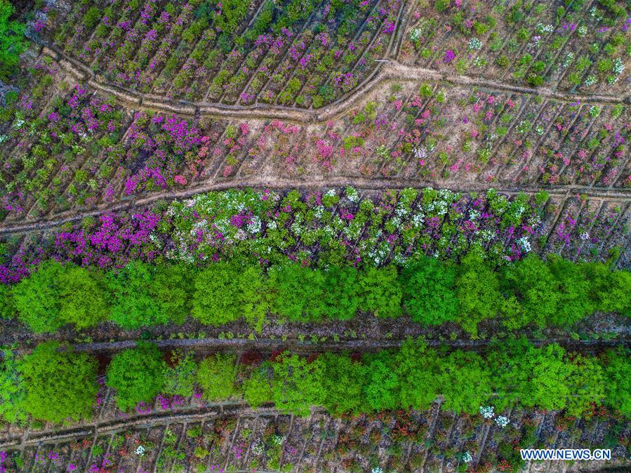 Photo taken on April 26, 2017 shows azalea blossoms in Si'an Township of Changxing County, east China's Zhejiang Province. More than 100 kinds of azalea flowers were planted here and attracted thousands of visitors. (Xinhua/Xu Yu)