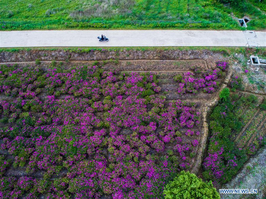 Photo taken on April 26, 2017 shows azalea blossoms in Si'an Township of Changxing County, east China's Zhejiang Province. More than 100 kinds of azalea flowers were planted here and attracted thousands of visitors. (Xinhua/Xu Yu)