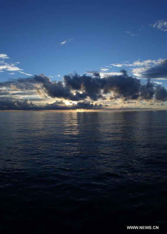 Photo taken on June 15, 2017 shows the sunrise in the west Pacific as seen from Xiangyanghong 09, mothership of China's manned submersible Jiaolong. (Xinhua/Liu Shiping)