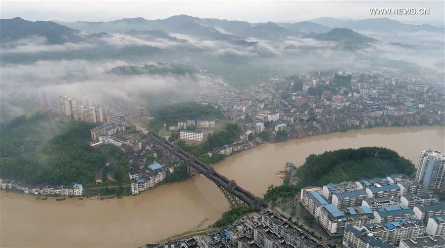 The fog cloaks Wind and Rain Bridge in Sanjiang Dong Autonomous County in Liuzhou, south China's Guangxi Zhuang Autonomous Region, June 30, 2017. (Xinhua/Gong Pukang)