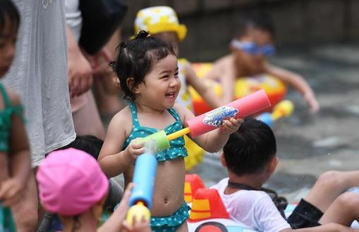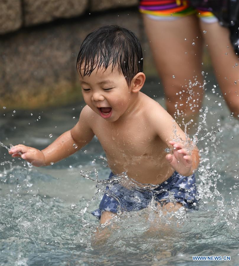 A child plays with water during the Taipei water festival in the Water Park of Taipei, southeast China's Taiwan, July 1, 2017. The festival, which started on Saturday, aims to raise awareness of the importance of health and the ecosystem through water-friendly facilities and activities. (Xinhua/Zhou Mi)